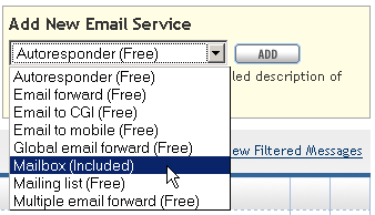 2. Locate the Add New Email Service box on the top right of the page. Select Mailbox (or the appropriate email service) from the drop down menu.